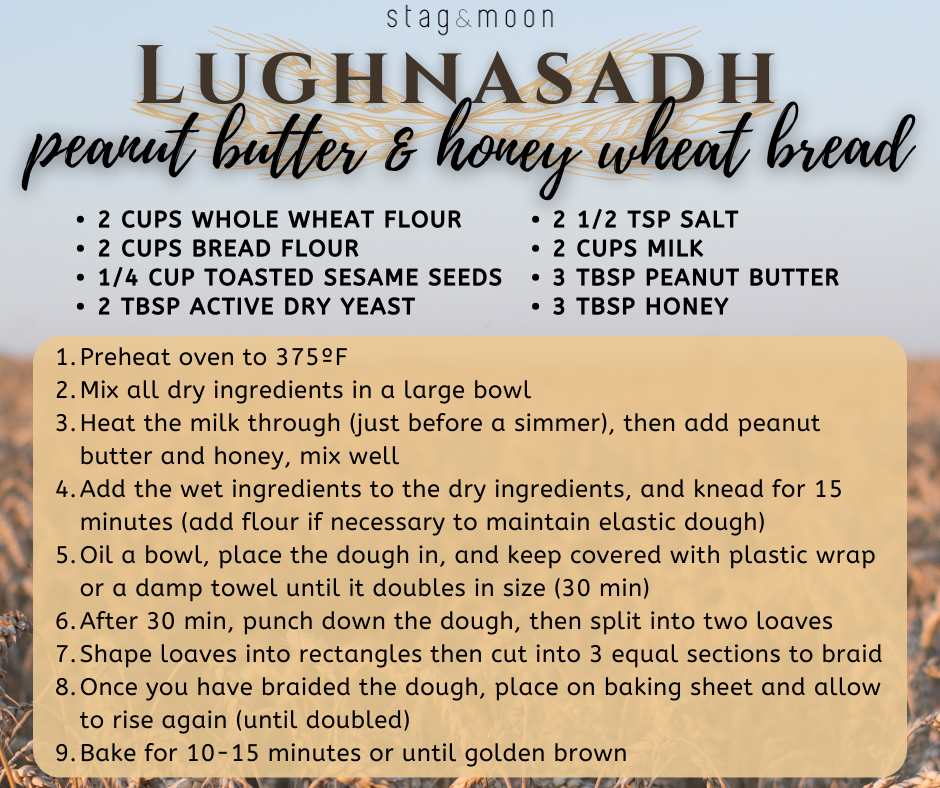 Lughnasadh is the celebration of the first grain Harvest. It is also the festival of Lugh, the Celtic Sun King and God of light. Now is a time for gathering and giving thanks for blessed abundance.
